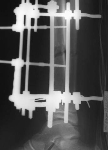 МТ мы используем, конечно, не только на голени. В прилагаемом примере у парня при поступлении была наружная ротация 40 гр. и "полумертвый" коленный сустав. Можно был бы, конечно, до конца использовать полную компоновку. Но для того он и есть метод выбора.