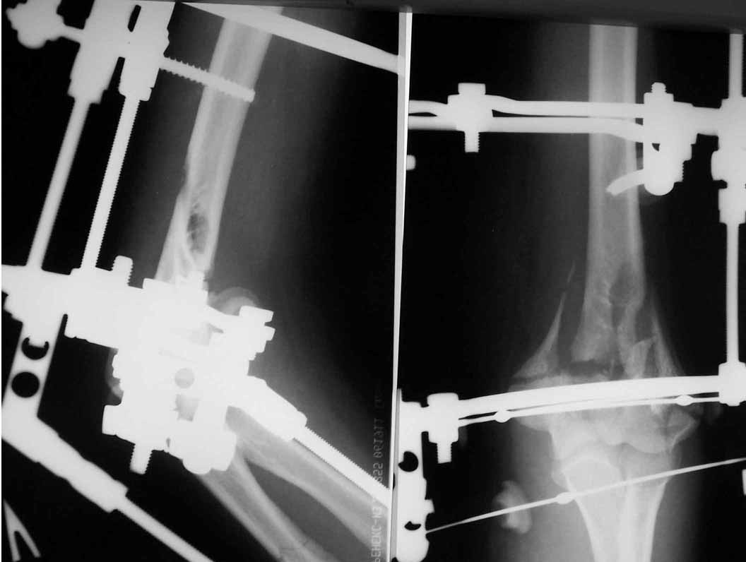 Д-з - открытый перелом мыщелков со смещзением и локтевой кости