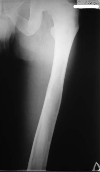 В приложении вид больного и рентгенограммы бедра 2001 год и 2005 год.