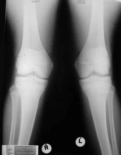 Тут ситуация совсем другая. Деформация не около-, а самая что ни на есть внутрисуставная. Покорректировать внешний вид конечности путем остеотомии дистального отдела бедра и high tibia (плюс или минус клин, одномоментно-постепенно, аппарат-пластина-стержень - дело третье) не сильно сложно, но это не решение проблемы. У больной, по