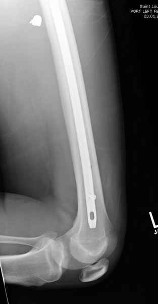 Входные маленькие отверстия от ранении просто игнорируются, никаких дренажей, как любое колотое ранения, они закрываются и были случаи через месяц. Конечно, ведется профилактика открытых ранении: сыворотки и т.д., но еще самое главное уделяем профилактике образования перелома из-за стресса в результате дефекта кортикального слоя.
