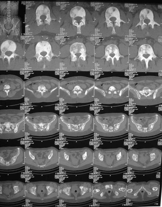 Остеосцинтиграфия 4.12.06. - активный остеобластический процесс в поясничном, нижнегрудном отделах позвоночника, костях таза.Местными онкологами онко-процесс исключен. Фтизиатрический и онкогематологический диагнозы исключены.