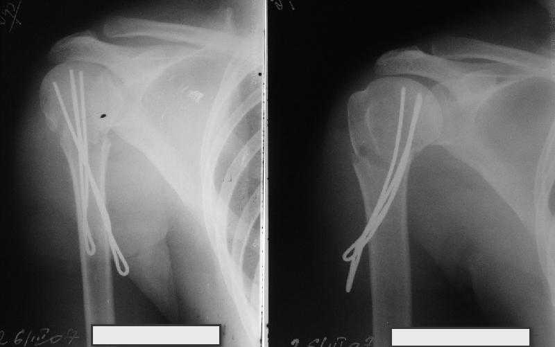 Хотя "варусная импакция" в проксимальном отделе плеча срастается хорошо консервативными мерами, но в результате при восстановлении такие больные теряют часть отведения, и тем более у больной варус осложнен еще сгибанием.
