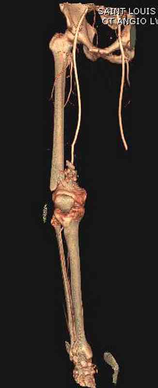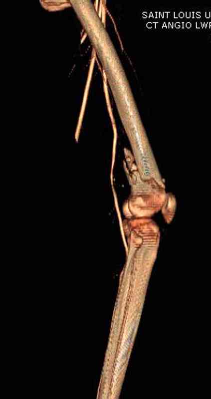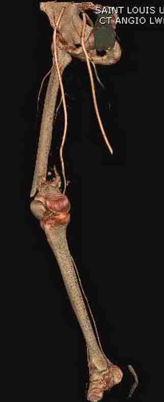 Несмотря на сниженный до 0.9 BI-ankle-brachial-index (обязательное, недорогое исследование при подозрении на повреждение сосудов, рассчитанный по разнице давления в нижней и верхней конечности), последующее КТ ангиограмма не подтвердила повреждения артериальных сосудов.