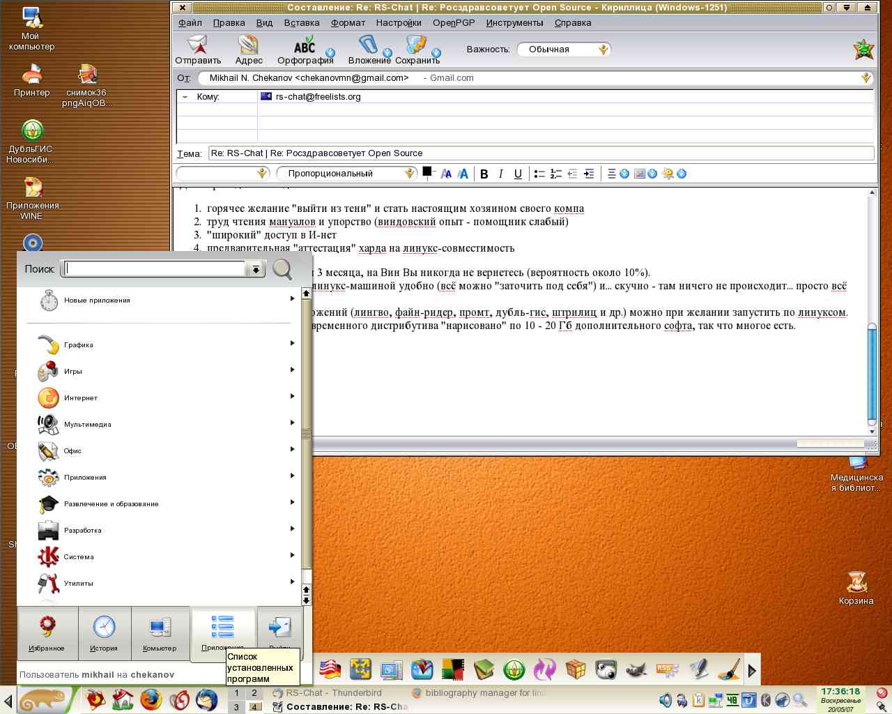 *** Вообще-то, переход на Линукс - это вопрос почти философский: Линукс канализирует нереализованную пассионарность... Если для чела, "свобода" не простой звук, если ему не все равно как и чем работает его самый нужный в нонешнее время помощник- комп, вам - сюда!