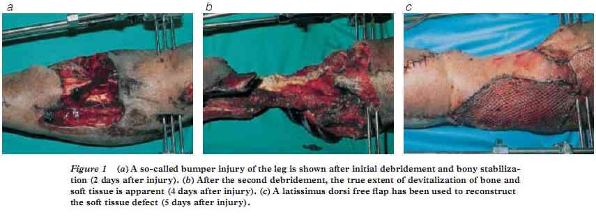 занимает время, и поэтому важно с самого начала принять меры по сокращению дефицита тканей. Удаленные некротические сегменты кости также облегчают напряжения и сокращения мягких тканей.