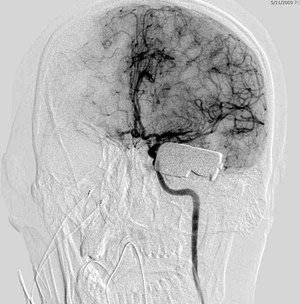 Отличный пример современного подхода к проблеме.Проиллюстрированы все технические и материальные возможности, которые позволили врачам безопасно удалить нож.30 лет назад был подобный случай - доставлен пациент с ножом в правой височной области, в проекции a.meningea media,длина лезвия до 6 см.Мнения молодых врачей разделились, от простого удаления ножа в операционной до трепанационной ревизии височной зоны.Заведующий отделением просто выдернул нож в перевязочной, назначил ПСС и пенициллин.Через 7 дней пациент без дефекта был выписан.