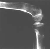 К сожалению, подобное осложнение "нет-нет да и возникает" при удлинении, коррекции деформации голени. В англоязычной литературе оно описано как "patella baja". Один из вариантов лечения - проксимальное перемещение надколенника приемами чрескостного остеосинтеза.
