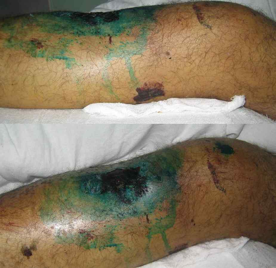 Очаг некроза 4 на 5 см по передней поверхности голени не оставил никакого варианта кроме внешнего остеосинтеза.